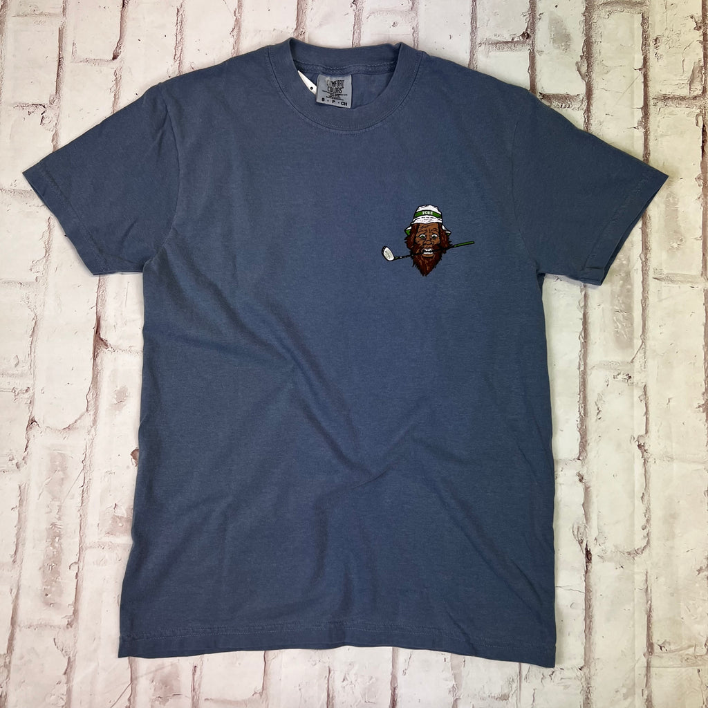 This New HDGC Collection Is Our Founder Scott's Favorite He Has Ever Designed!! It features our Hammer Down Golf Club "Hack Sasquatch" Design as a small left chest print with the "Hack Sasquatch HDGC" as a full back print for a simple and classic look. Available in Denim Comfort Colors as shown and also look for other colors on our site. Unisex Sizes Small to 3XL