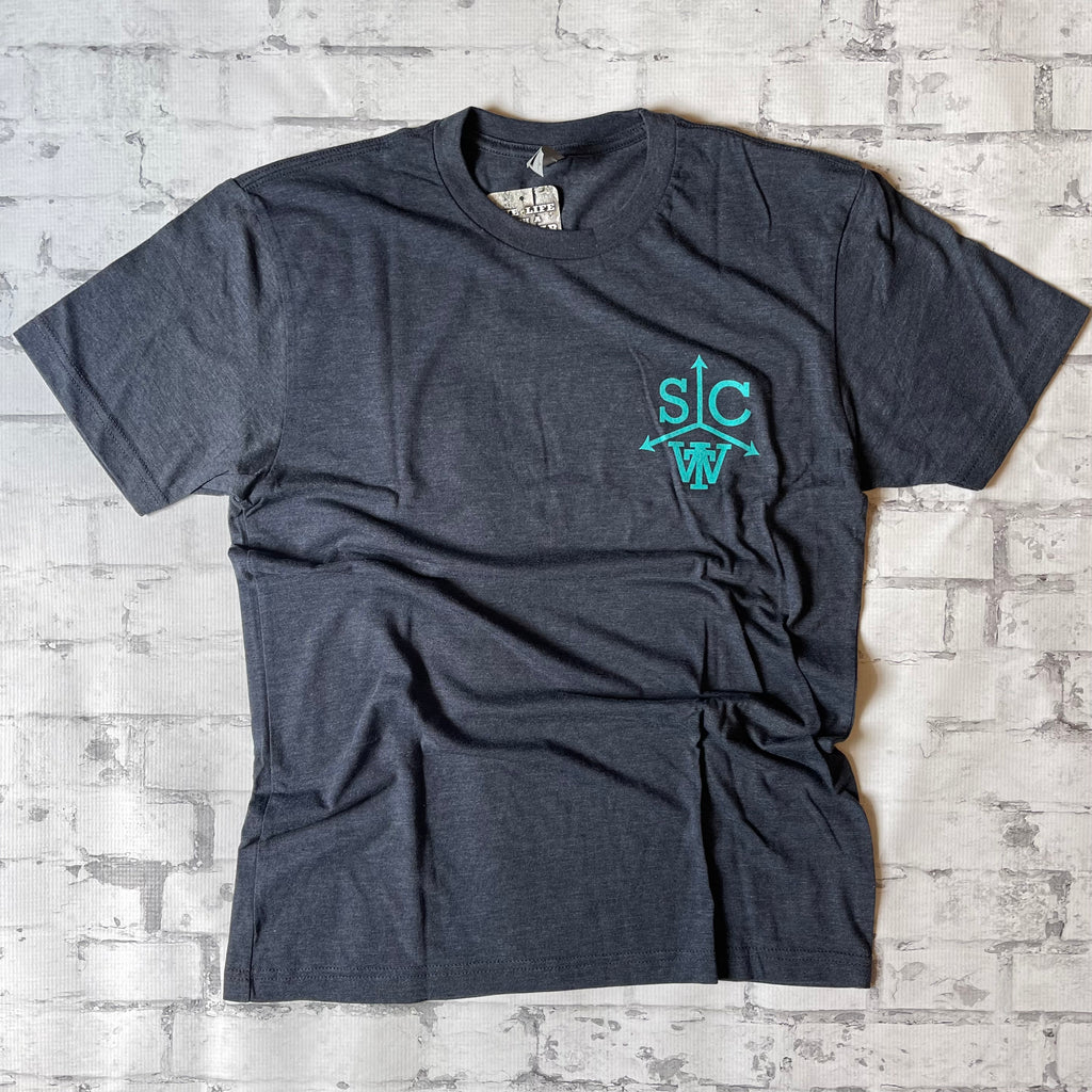 This soft short sleeve t-shirt has always been one of best sellers!! It features our Southern Charm Original Logo Design as a small left chest print with the Southern Charm "Coastal Living Van" Design as a back print. Available in Vintage Navy as shown and also look for other colors on our site. Unisex Sizes Small to 3XL