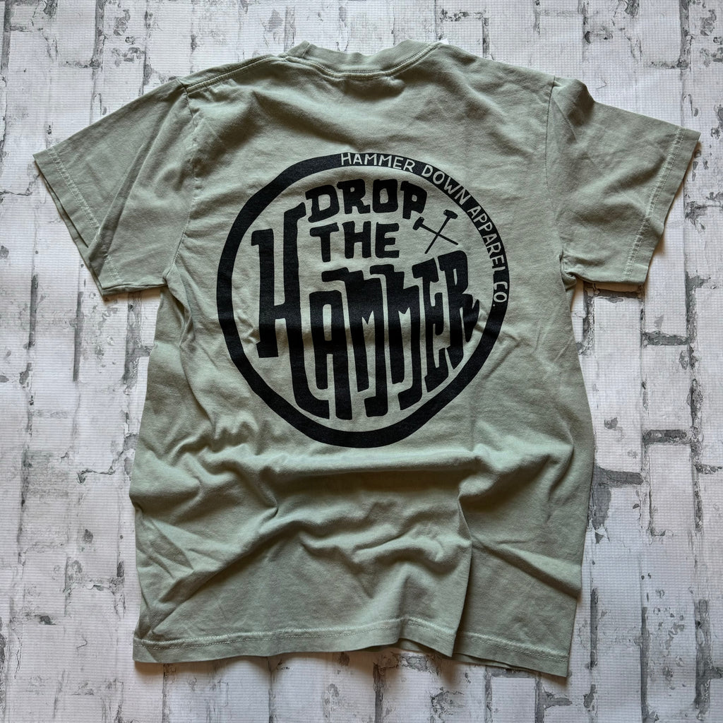 This soft comfort colors short sleeve t-shirt has always been one of best sellers!! It features our Hammer Down Logo Design as a small left chest print with the Hammer Down "Field Circle" Design as a back print. Available in Sage as shown and also look for other colors on our site. Unisex Sizes Small to 3XL