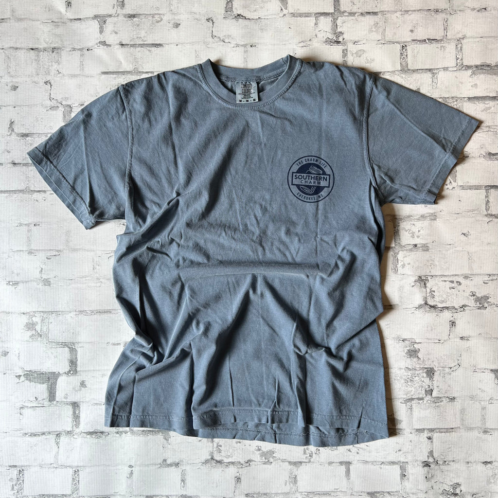 This soft comfort colors short sleeve t-shirt has always been one of best sellers!! It features our Southern Charm Original Logo Design as a small left chest print with the Southern Charm "70'S" Design as a back print. Available in Denim as shown and also look for other colors on our site. Unisex Sizes Small to 3XL