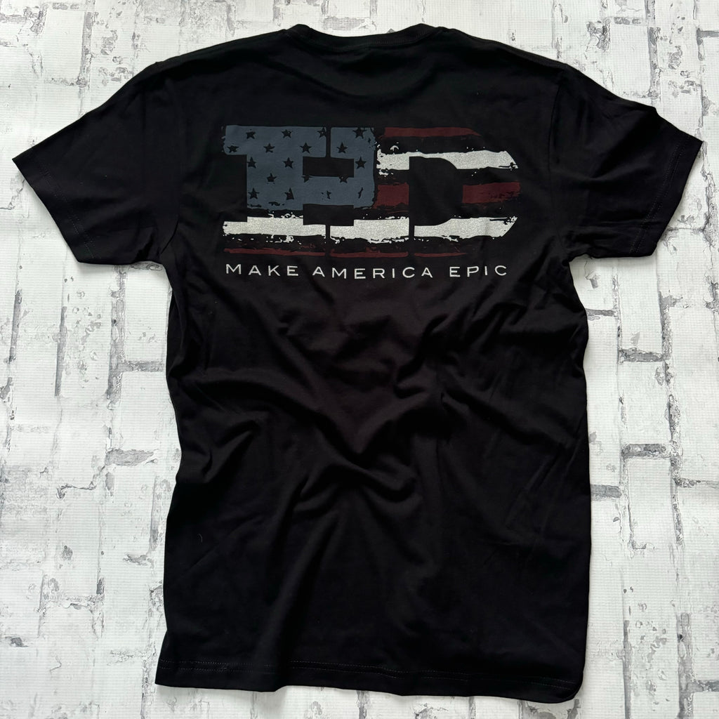 This soft short sleeve t-shirt has always been one of best sellers!! It features our Hammer Down Original Logo Design as a small left chest print with the Hammer Down “MAE Flag" Design as a back print. Available in Black as shown and also look for other colors on our site. Unisex Sizes Small to 3XL