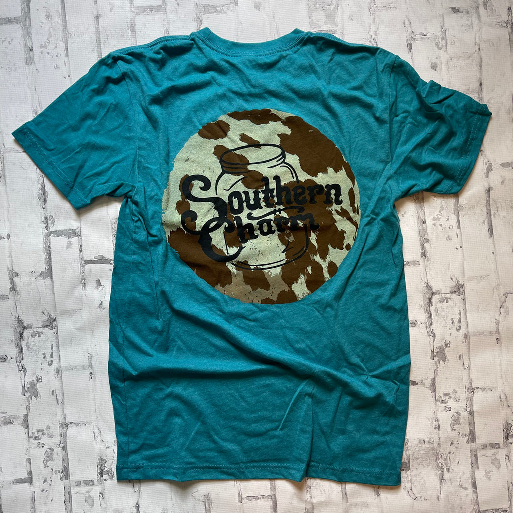 Southern Charm "Cow Original Circle" Short Sleeve T-shirt - Turquoise - Southern Charm "Shop The Charm"